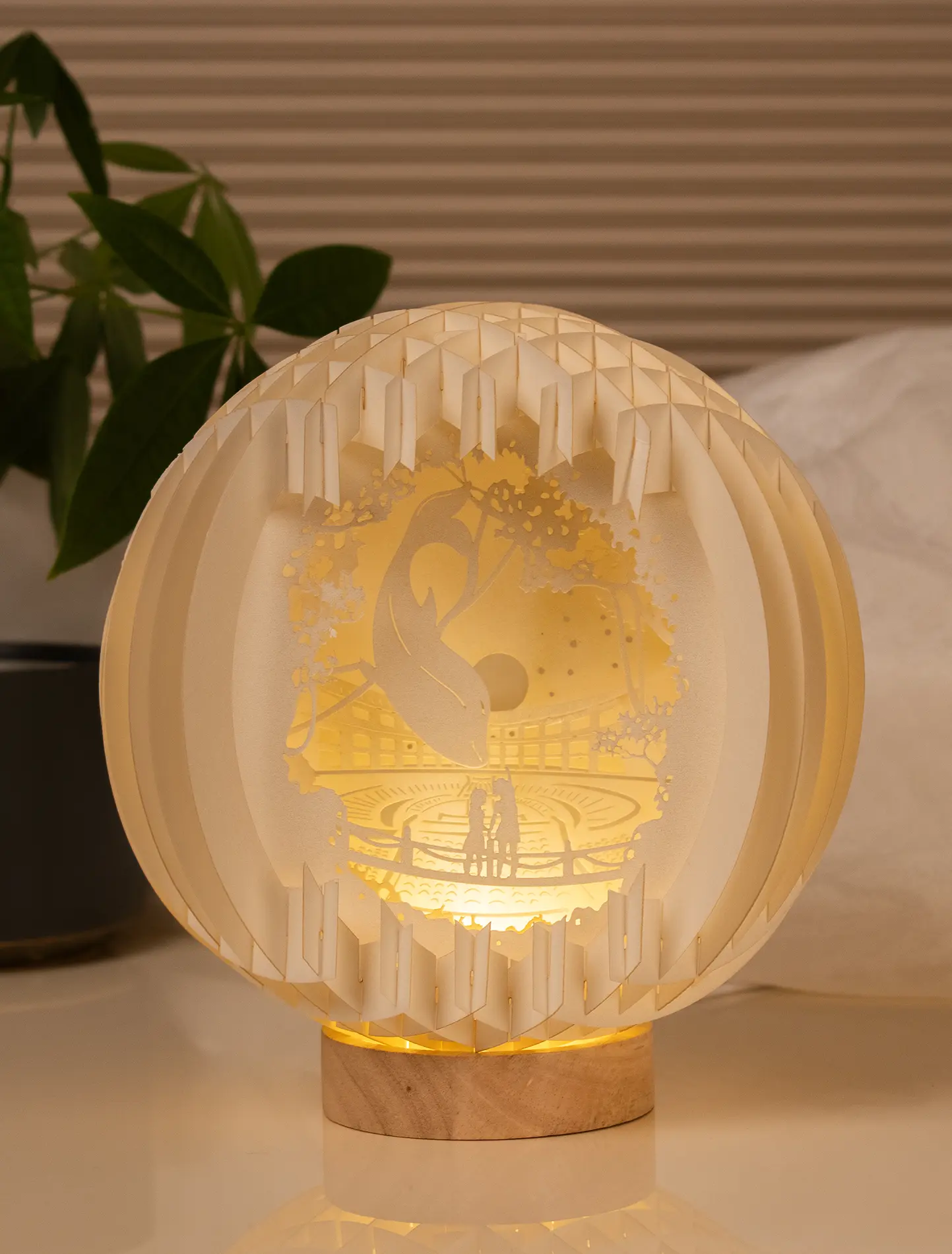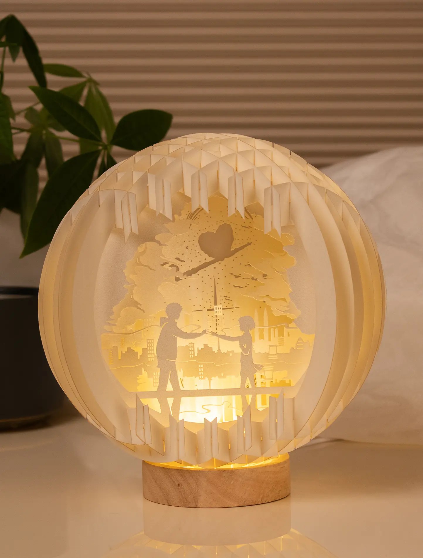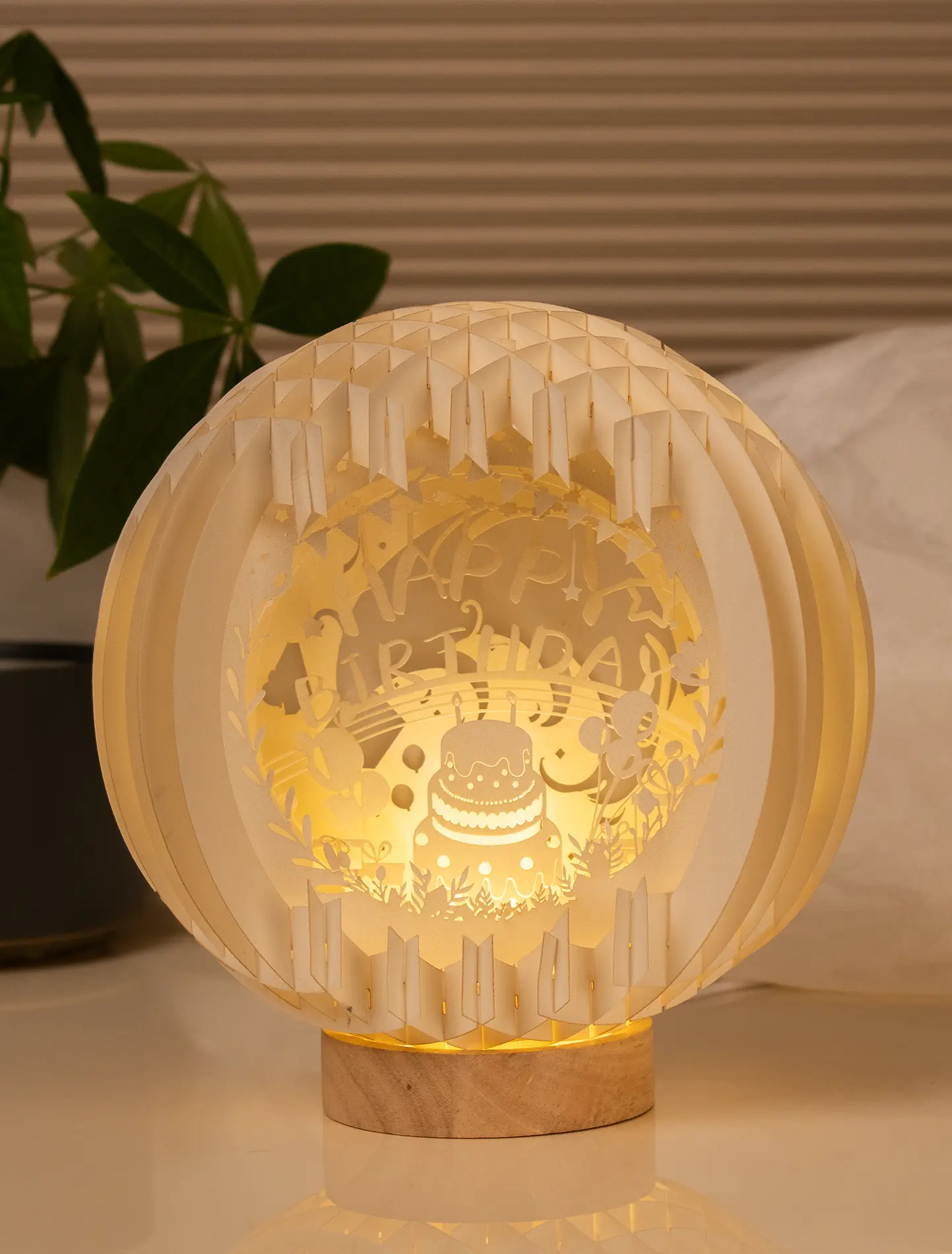 3D LED Pop-up Lampe mit rundem Holz Fuß