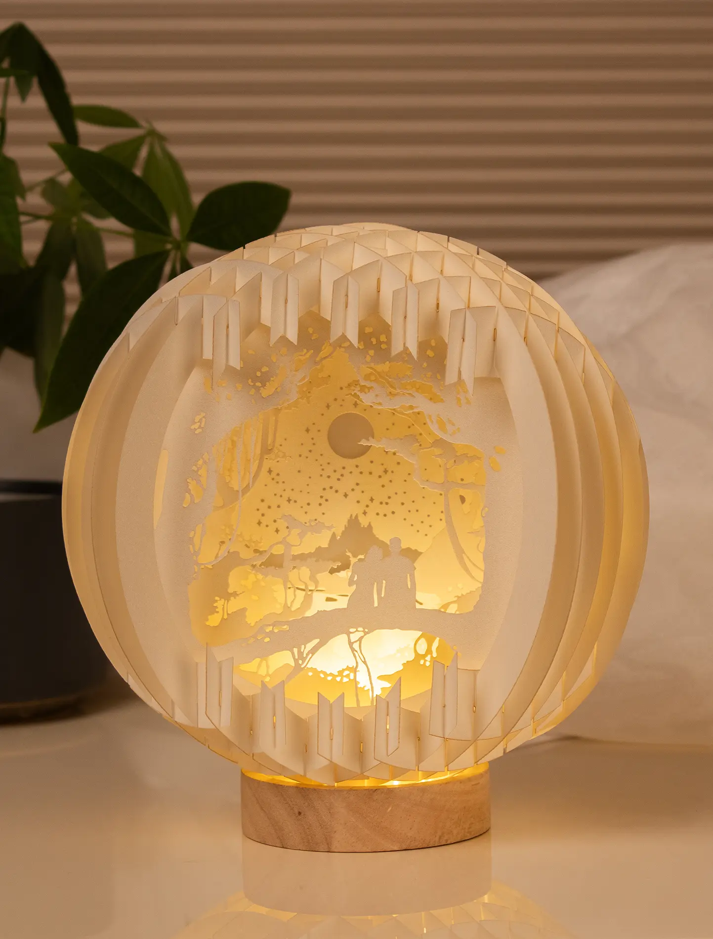 Das zarte Licht, das durch die filigranen Laserschnitte dringt, bringen eine entspannte und verträumte Atmosphäre in jedes Zimmer.
